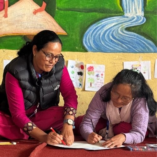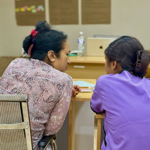 Neben Lehrkräften begleiten wir in Nepal auch Caregiver, die täglich mit Kindern, Jugendlichen und Erwachsenen mit Behinderung arbeiten. Viele von ihnen haben keinen Zugang zu Fortbildungen oder Methoden, die kreative Prozesse gezielt nutzen.